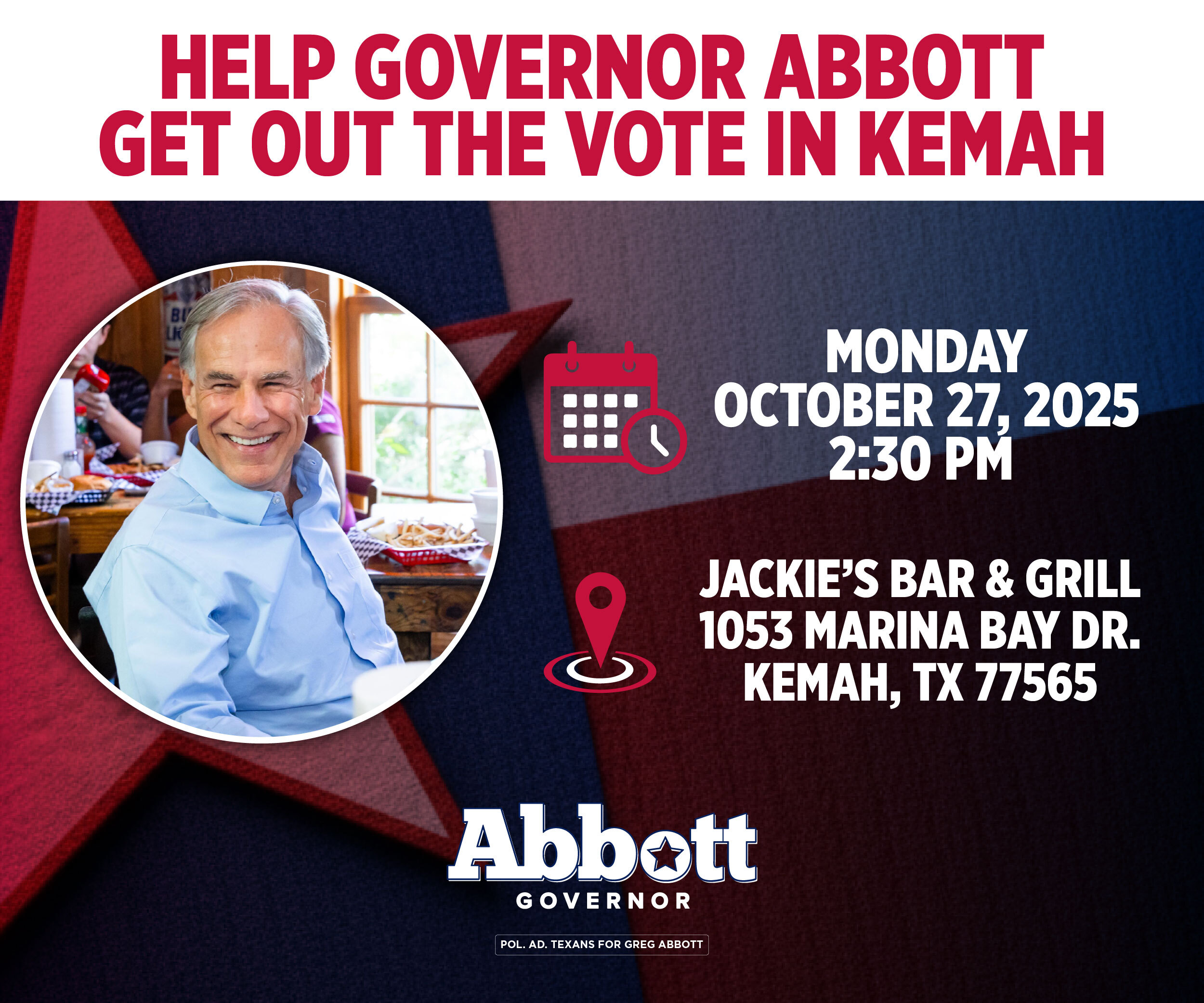 Governor Abbott in Kemah Oct. 27th October 21, 2025 By Galveston Pachyderms Leave a Comment Help Get Out The Vote!